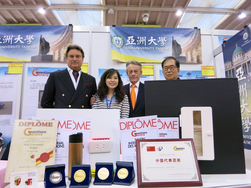 亞洲大學(Asia University, Taiwan)參加2013瑞士日內瓦國際發明展,傳出捷報,以「緊急逃生救生插座」等4件作品參展,共得六個獎,奪得3金1銀2特別奬,獲大滿貫,大放異彩;台灣代表團團長、台灣發明協會執行長陳宗台說,各國特別獎在日內瓦展中是高於金牌的殊榮,得獎不易,台灣101件作品只有6件分獲各國特別獎,亞洲大學就獲2件,又是各國參賽得獎的最高殊榮,值得嘉許! 亞大創意商品設計學系四年級陳俞妏、張培柔、何芳宜等位同學的「緊急逃生發光插座」作品,獲金牌及中國大會特別奬;視覺傳達設計學系四年級謝雅思、邱于庭、張君鈺同學的「公共廁所衛生紙裝置設計」作品,也獲金牌及日內瓦大會特別奬;視覺傳達設計學系四年級張丞恩同學的「造型兒童潔牙器」,再奪一金;創意商品設計學系三年級許家珍、黃廣文、張馨予等位同學的「改良式關懷保溫瓶」作品,獲得銀牌。 |