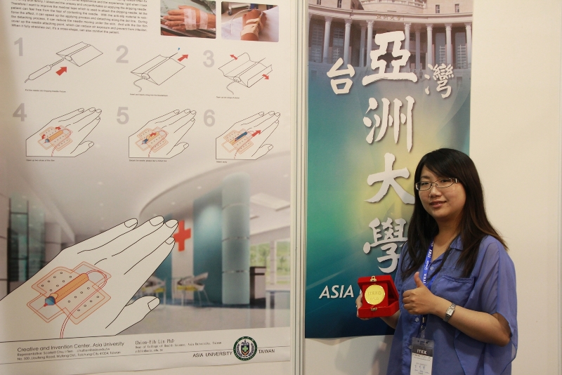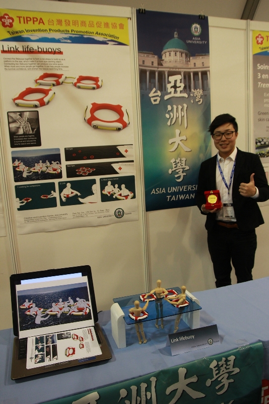 亞洲大學(Asia University, Taiwan)在馬來西亞發明展中,18件作品得9金9銀3特別獎,大滿貫,不少金牌作品都大放異彩,受裁判與眾多廠商青睞。帶隊的創意設計暨發明中心執行長朱界陽說,好幾件都具商品化,例如可連結身心救生圈、有翅膀的點滴針頭固定器等,都可馬上生產上市。 「可連結身心救生圈」得金牌、馬來西亞特別獎的亞洲大學商設系大四學生李峻瑤說,他不久前看到不少船難,常救生衣來不及穿船即下沉,很恐怖,於是他設計可連結在一起的救生圈,一個個拋下後即可連結,兩個救生圈就能多出一個空間,十個救生圈連結就可救二十人,老人、小孩都可一起照顧,身心連結,可在海面上形成海上平台,搶救目標明顯,加強生存信心。 「我曾車禍住院,打點滴針很痛,護士常手拿一堆膠帶,手忙腳亂,所以我研發有翅膀的點滴針頭固定器。」獲得金牌、香港特別獎的商設系大四學生郭芳雯表示,她已將此發明做成商品,確實可減輕疼痛又衛生舒適,在會場有不少馬來西亞醫生都很喜歡。朱執行長指出,亞洲大學兄弟學校中國醫藥大學附設醫院對此產品頗感興趣,將進一步洽商技轉,嘉惠廣大病患。 |
