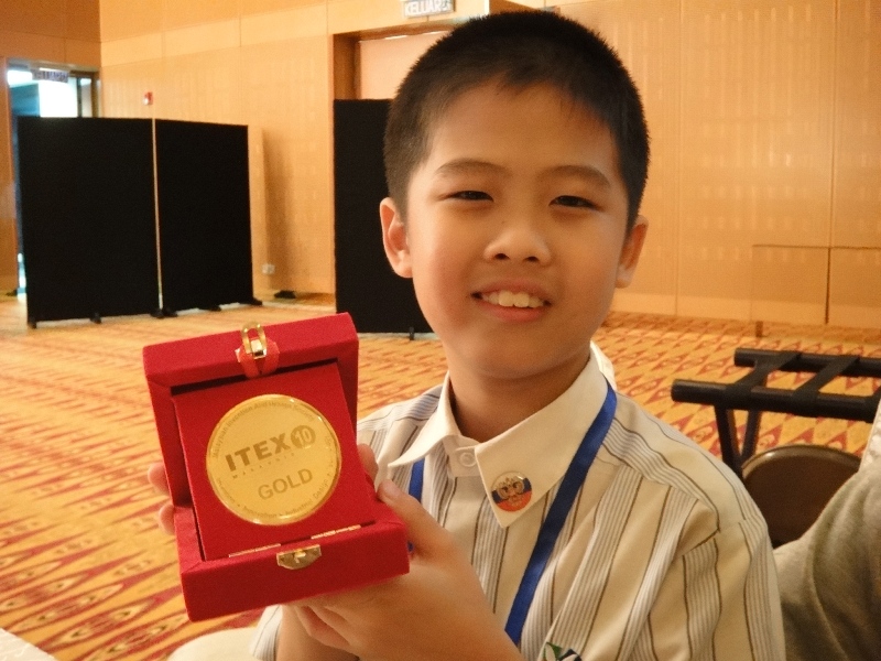 圖說:亞洲大學創意設計暨發明中心總監鄧鴻吉,指導他9歲的兒子鄧立維參賽,摘下金牌,還獲的大會頒給創意特別獎。
